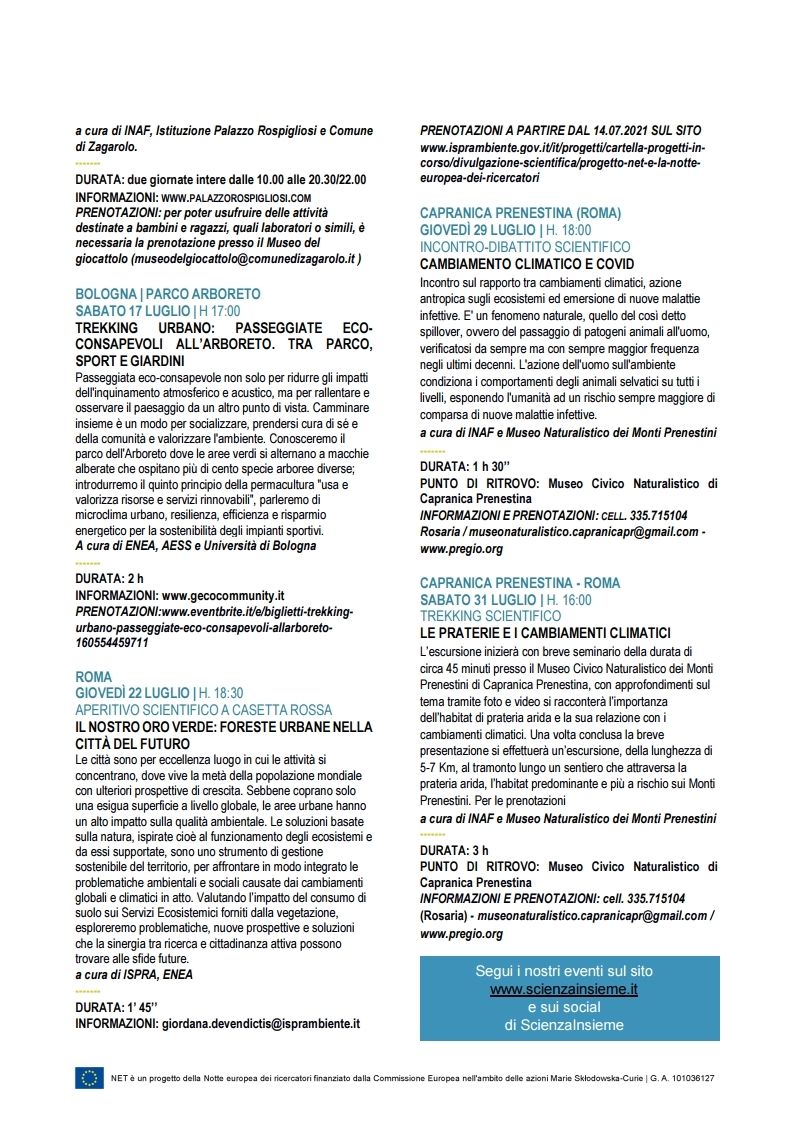 Un ricco programma di eventi per la stagione NET 2021 in tutti i siti di NET. L’estate sarà arricchita di molte iniziative di tutti i nostri partner. Ecco gli appuntamenti di Luglio 2021